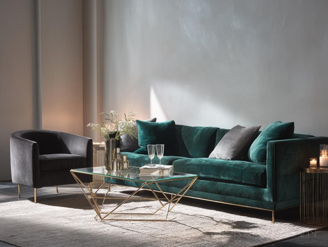 Trong không gian sống hiện đại, bộ đồ nội thất Agarto mang đến một vẻ đẹp tinh tế và sang trọng, thể hiện rõ nét sự tinh xảo trong thiết kế. Bộ sofa bọc nhung màu xanh ngọc lục bảo với độ mềm mại tuyệt vời là điểm nhấn chính của căn phòng, kết hợp hoàn hảo với những chiếc ghế armchair đơn giản, thanh lịch màu xám than, tạo nên một không gian sống vừa hiện đại, vừa ấm cúng.