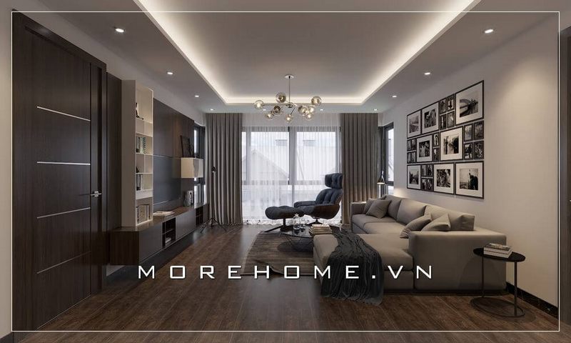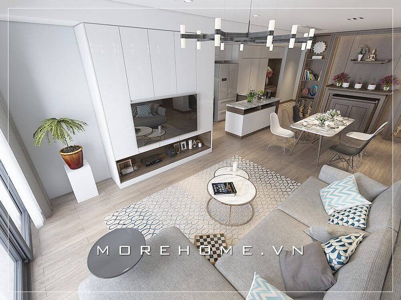 Mẫu thiết kế nội thất chung cư hiện đại với nội thất tông màu ghi trắng tinh tế tạo không gian sáng thoáng mát, trẻ trung