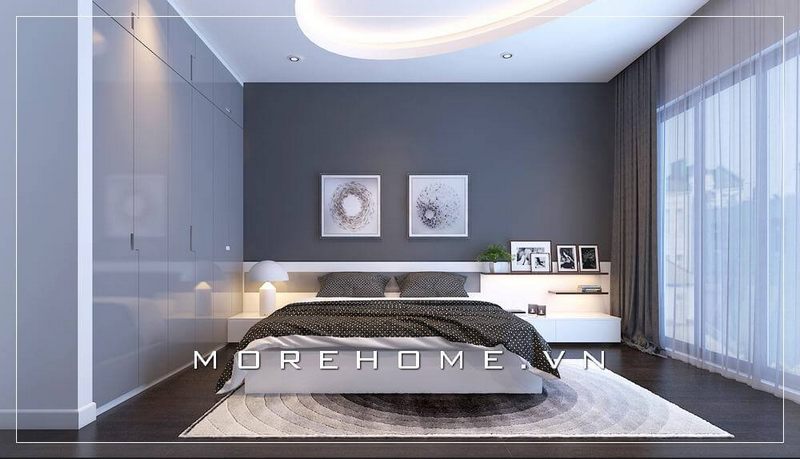 Lựa chọn giường ngủ màu trắng kết hợp với nội thất phòng ngủ mang lại không gian nghỉ ngơi đầy thanh nhã, tinh tế mà dễ chịu