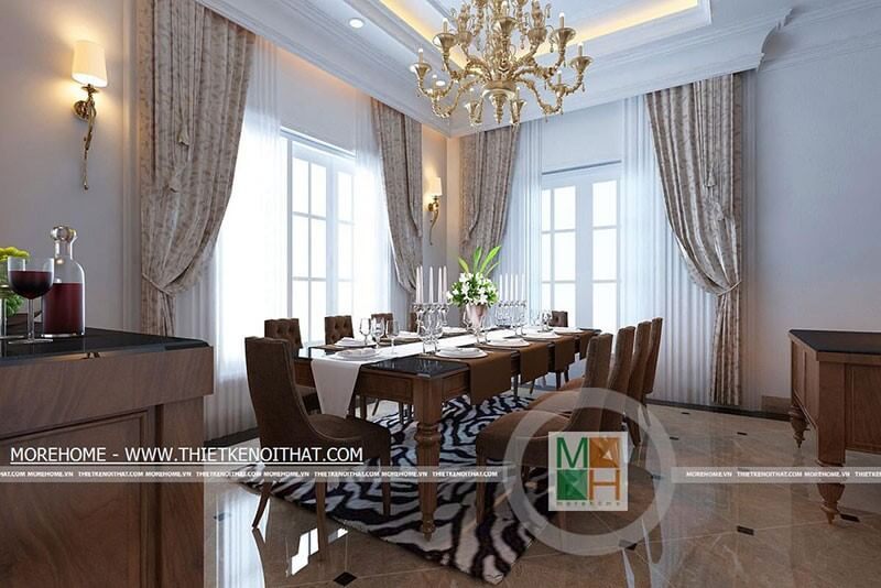 Mẫu bàn ăn gỗ tự nhiên 10 ghế có thiết kế tân cổ điển sang trọng sẽ làm nên phong cách cho phòng ăn biệt thự của bạn.