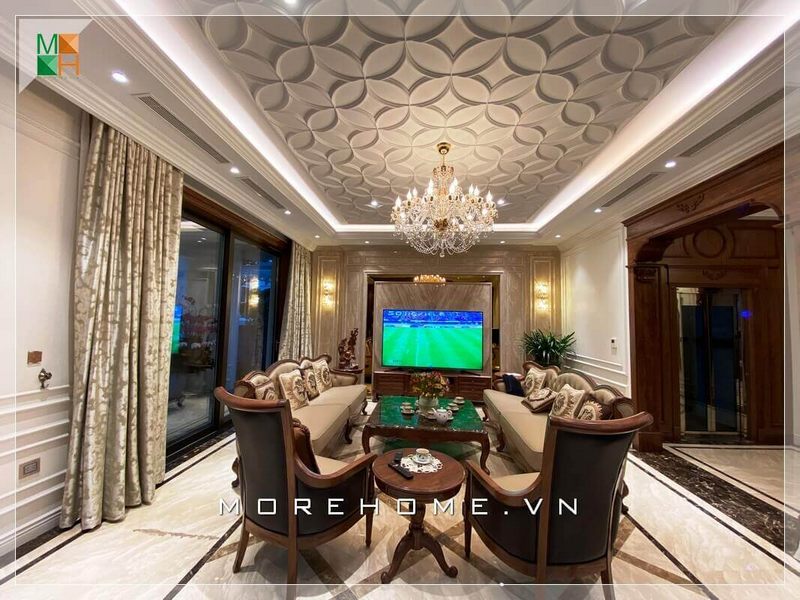 Mẫu bộ sofa phòng khách cao cấp tân cổ điển sang trọng và tiện nghi.